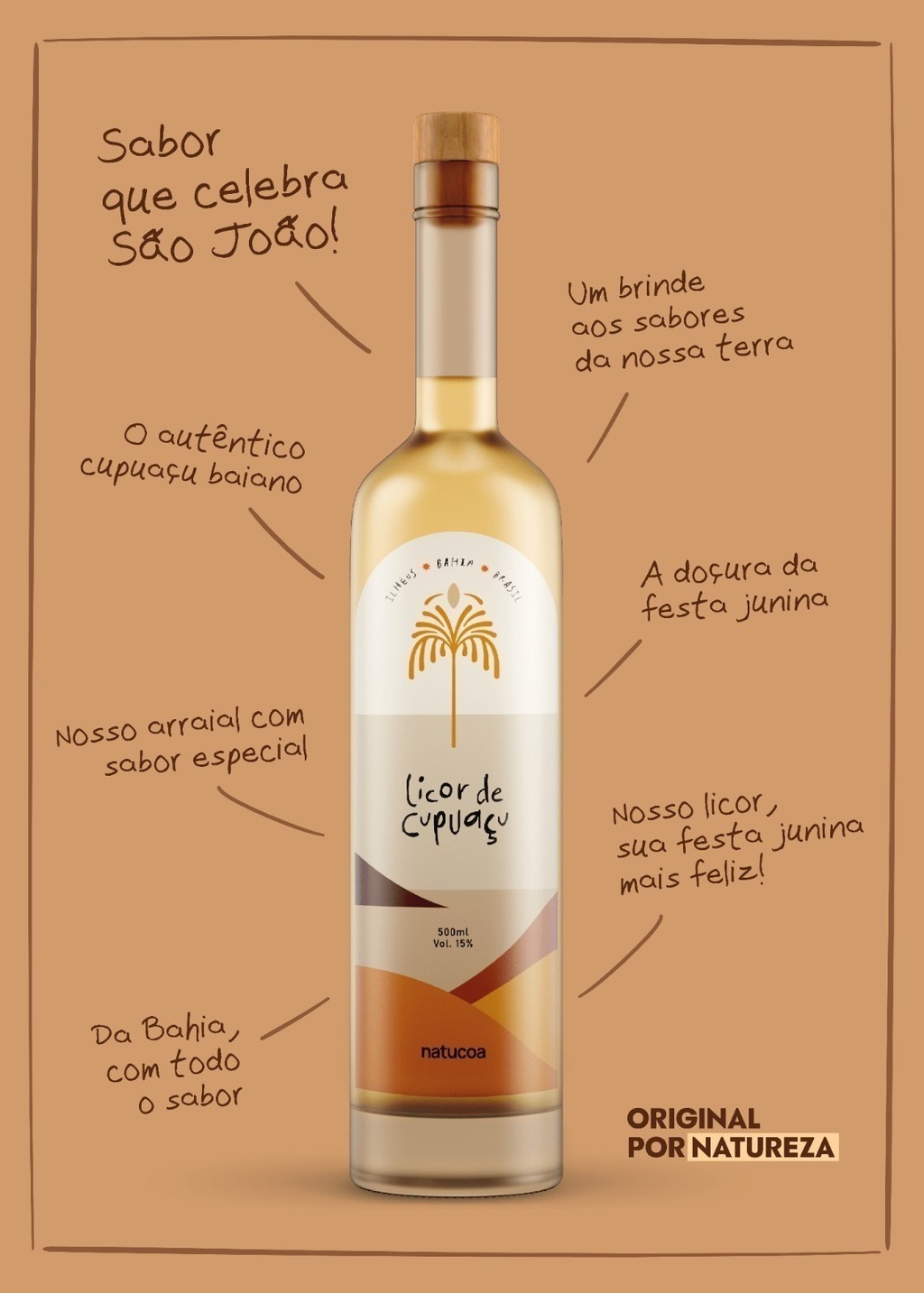 Celebre o sabor autêntico da Bahia com o nosso Licor de Cupuaçu Natucoa! Feito com o verdadeiro cupuaçu baiano, esse licor é a escolha perfeita para brindar as festas juninas e levar o gosto da nossa terra para o seu arraial.